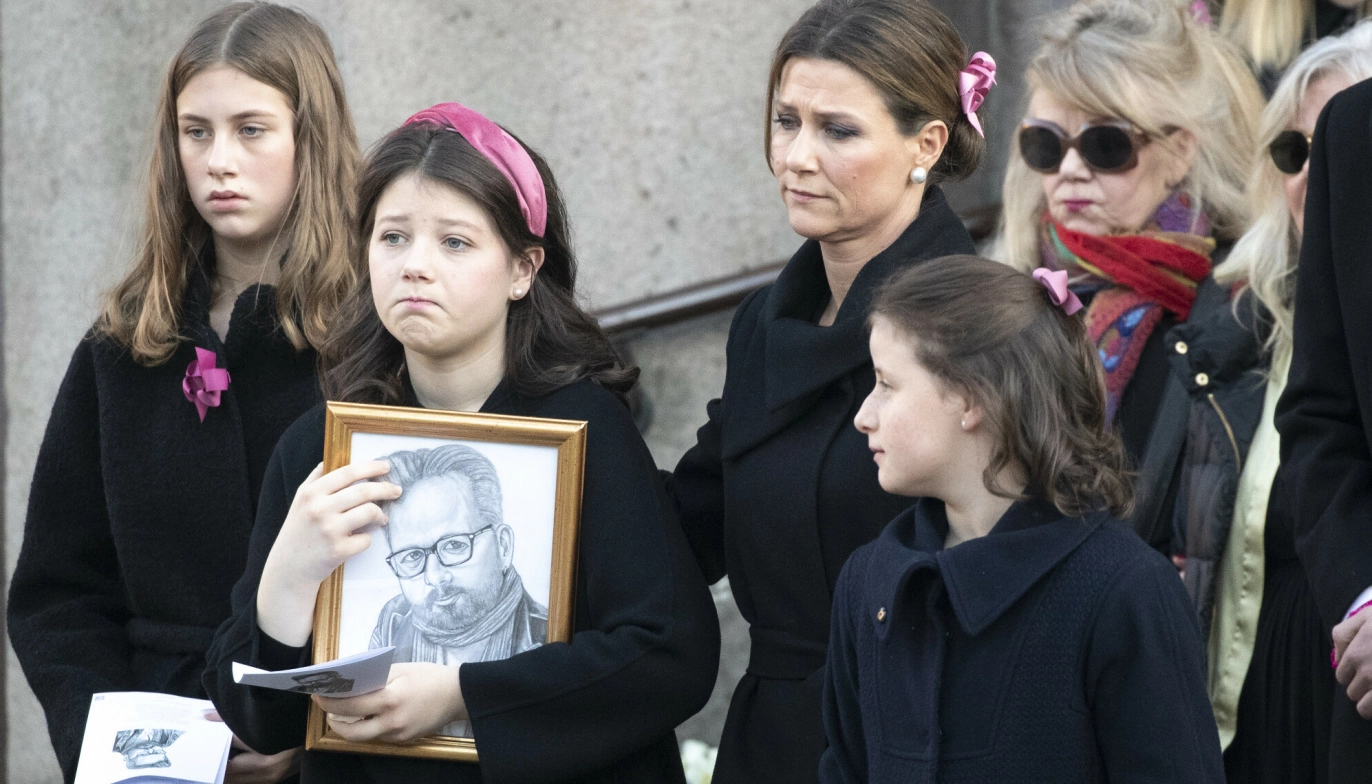 I SORG: Fra Ari Behns bisettelse i Oslo Domkirke. Leah Isadora Behn (t.v.), Maud Angelica Behn, Prinsesse Martha Louise og Emma Tallulah Behn. Foto: Andreas Fadum / Se og hør