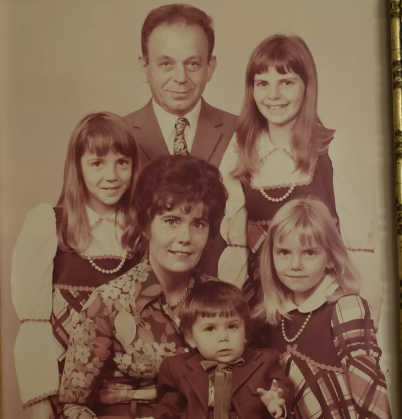 FAMILIEN MIHAILA: Stueveggen er fullt med familiebilder, dette er av ekteparet Inger og Willy, og deres fire barn. Foto: Privat