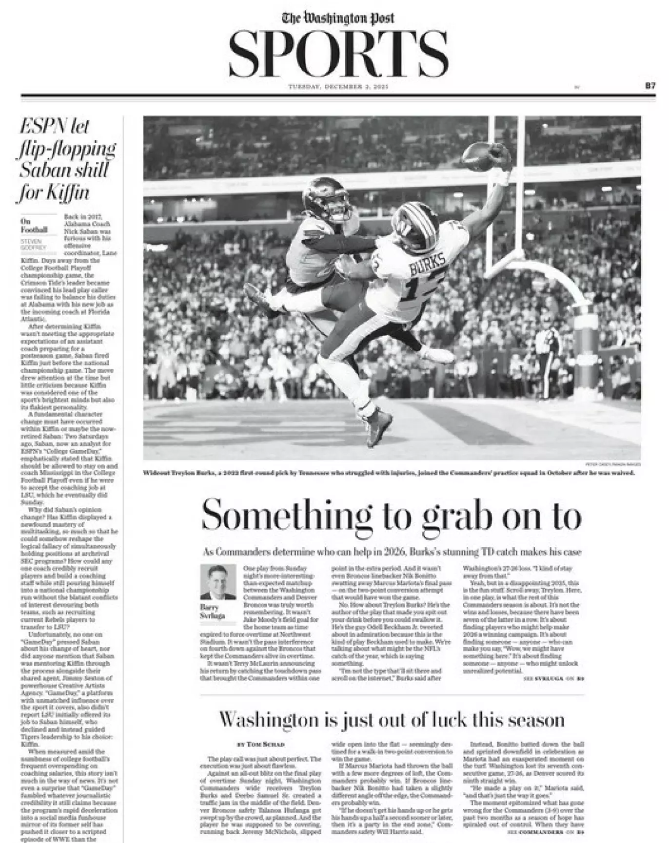 Storavisa Washington Post nevner ikke dette med et ord i papirutgaven. Amerikanske idretter råder.