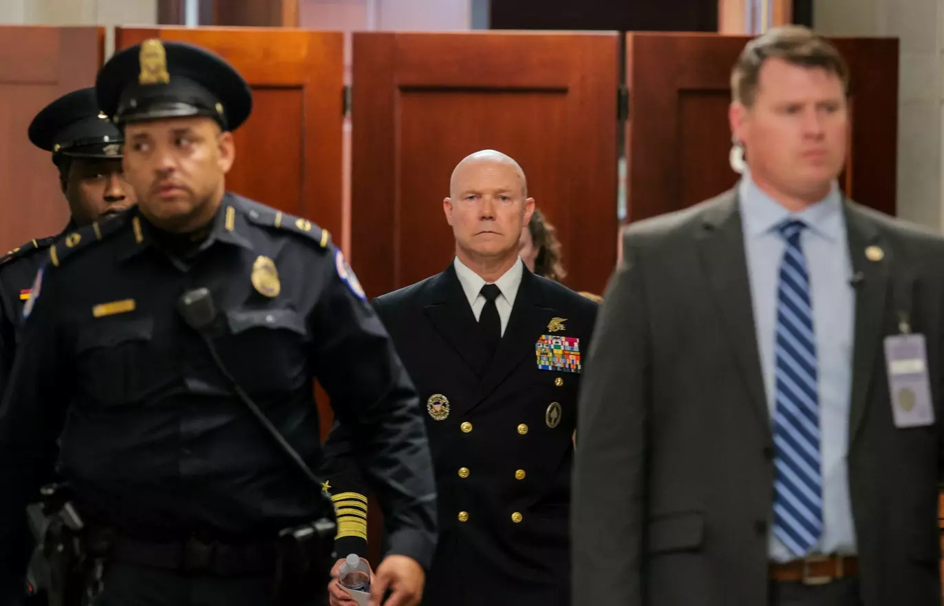 ORIENTERING: Admiral Frank Bradley var i Kongressen torsdag for å orientere senatet og medlemmer av Representantenes hus om dobbeltangrepet 2. september. Foto: Anna Moneymaker/ Getty Images via AFP/ NTB