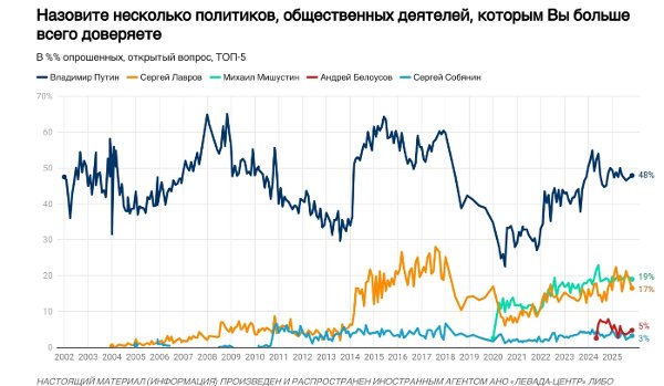 NEDOVER: Sergej Lavrov (oransje linje) har vært Russlands frontfigur i fredsforhandlingene. Meningsmålingene tyder på at han ikke lenger har mye tillit i befolkningen, sammenlignet med det han hadde rundt midten av 2010-tallet.