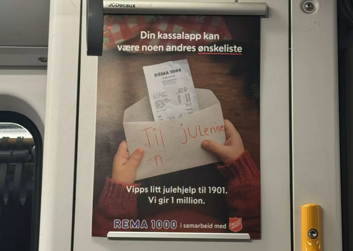 JULEHJELP: Rema 1000 har blant annet markedført kampanjen «Julehjelp» på T-banen i Oslo. Foto: Privat