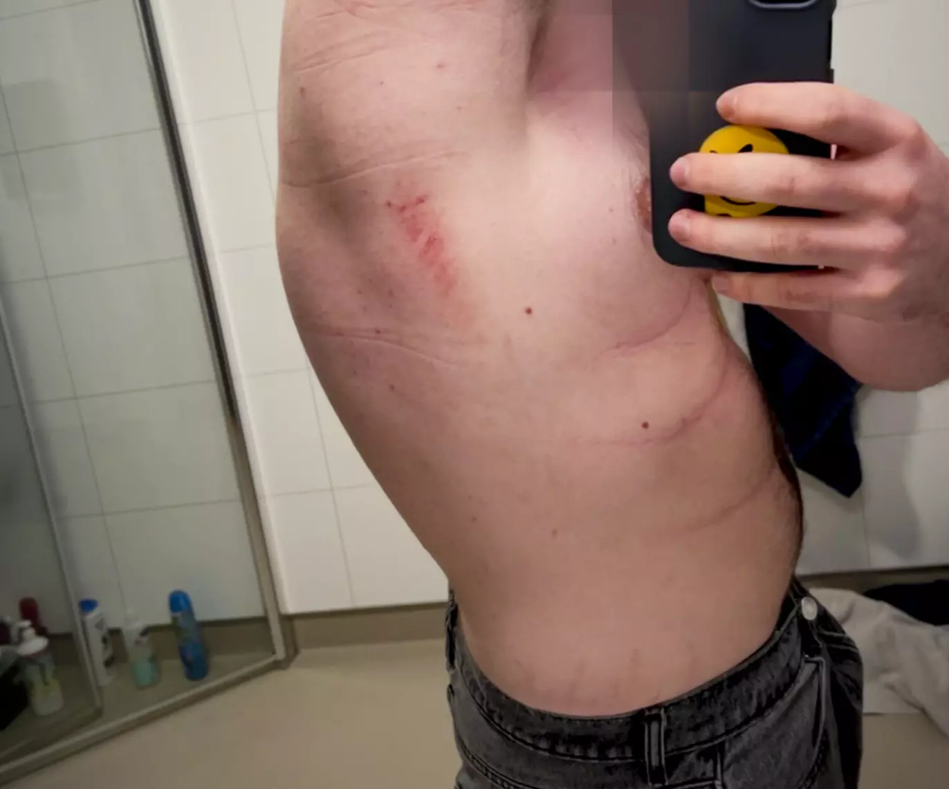 FIKK MERKER: – Slik så armen min ut etter at jeg ble lagt i bakken av ansatte, forteller «Anders». Foto: Privat