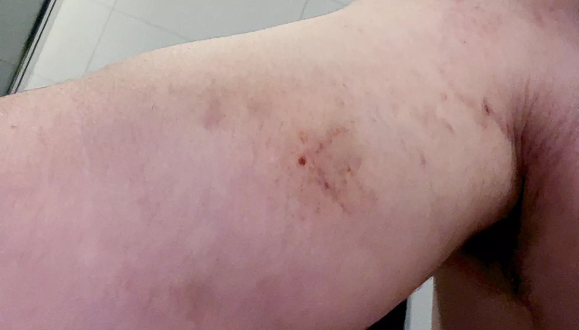 FIKK MERKER: – Slik så armen min ut etter at jeg ble lagt i bakken av ansatte, forteller «Anders». Foto: Privat