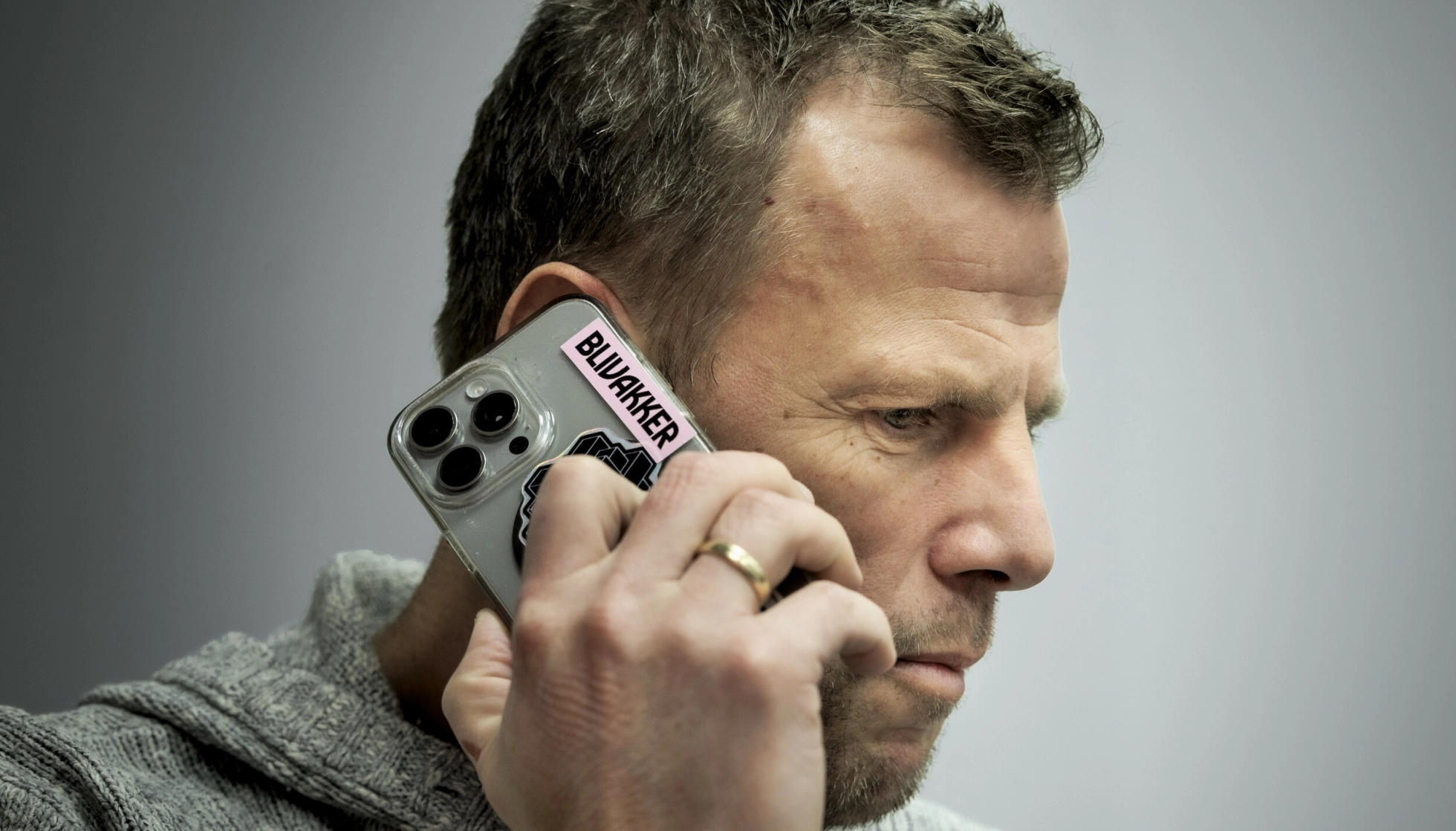 OPPTATT MANN: I løpet av intervjuet durer og kimer det fælt i telefonen til Einar. På et tidspunkt ringer hans ferske kollega og «Spillet»-kompanjong Magnus Helle. Foto: Lars Eivind Bones / Dagbladet
