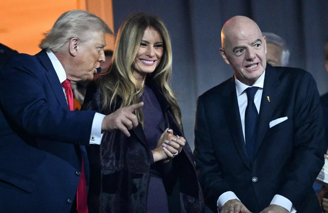 INNE I VARMEN: FIFA-president Gianni Infantino (t.h.) har klart å innynde seg hos president Donald Trump og førstedame Melania. Foto: NTB
