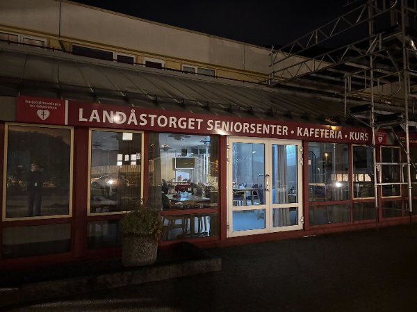 Beboere ble samlet i dette lokalet tilhørende Landåstorget seniorsenter.