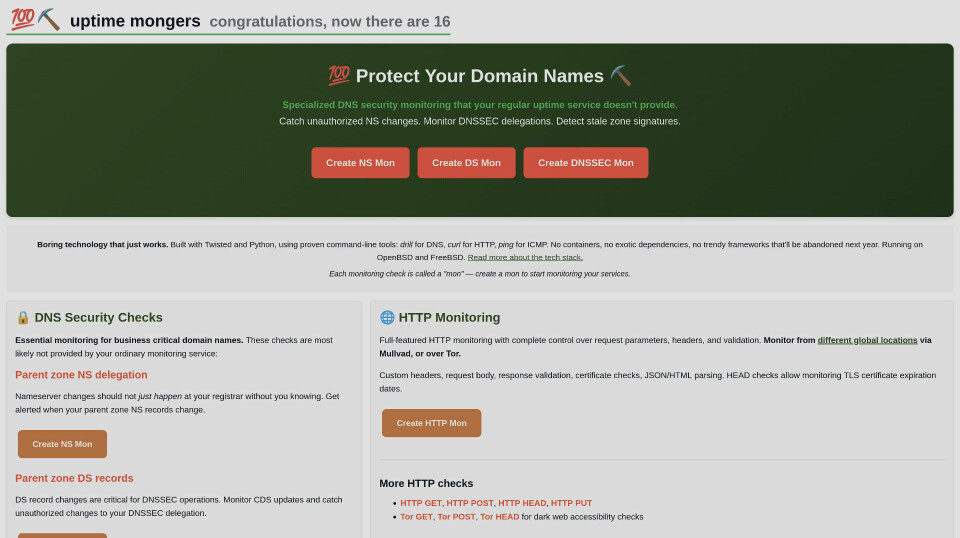 Versjon 1.0 av uptime mongers.