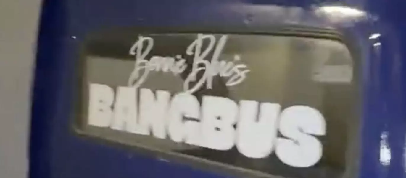 HAR DELT SELV: Bonnie Blue har selv delt innhold fra Bali – deriblant en video av av denne bussen – i sosiale medier. Skjermdump: Bonnie Blue / TIktok