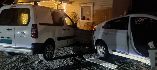 Bilen skal ha rygget inn i gjerdet til huset deres, før tilhengeren tok imot bilen og ble skvist inn i deres bil som sto parkert.