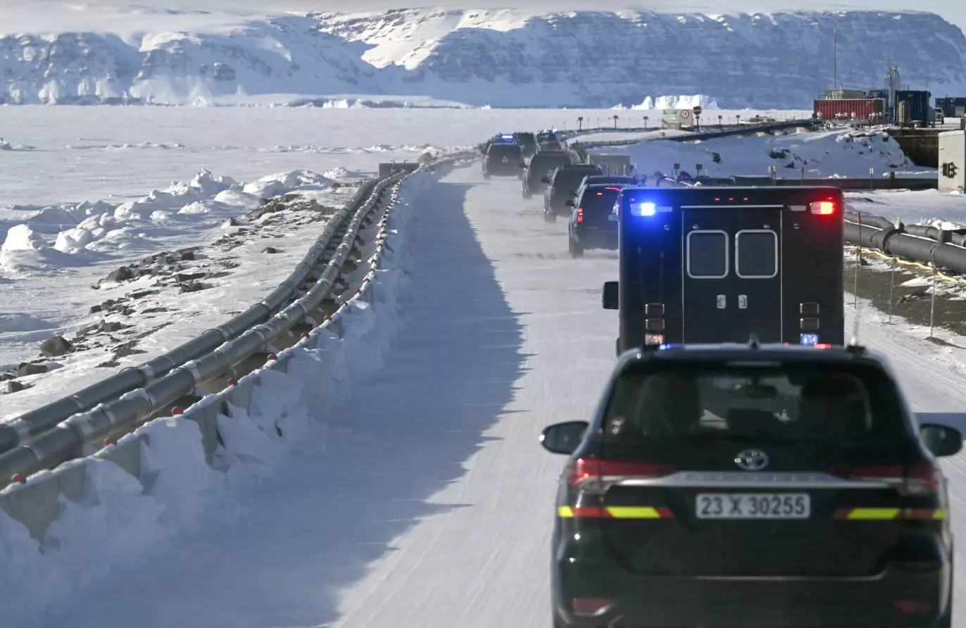 TIL STEDE: USAs visepresident J.D. Vances kjørte med følge gjennom Pituffik Space Base på Grønland i mars 2025. Foto: Jim Watson/Pool via AP/NTB