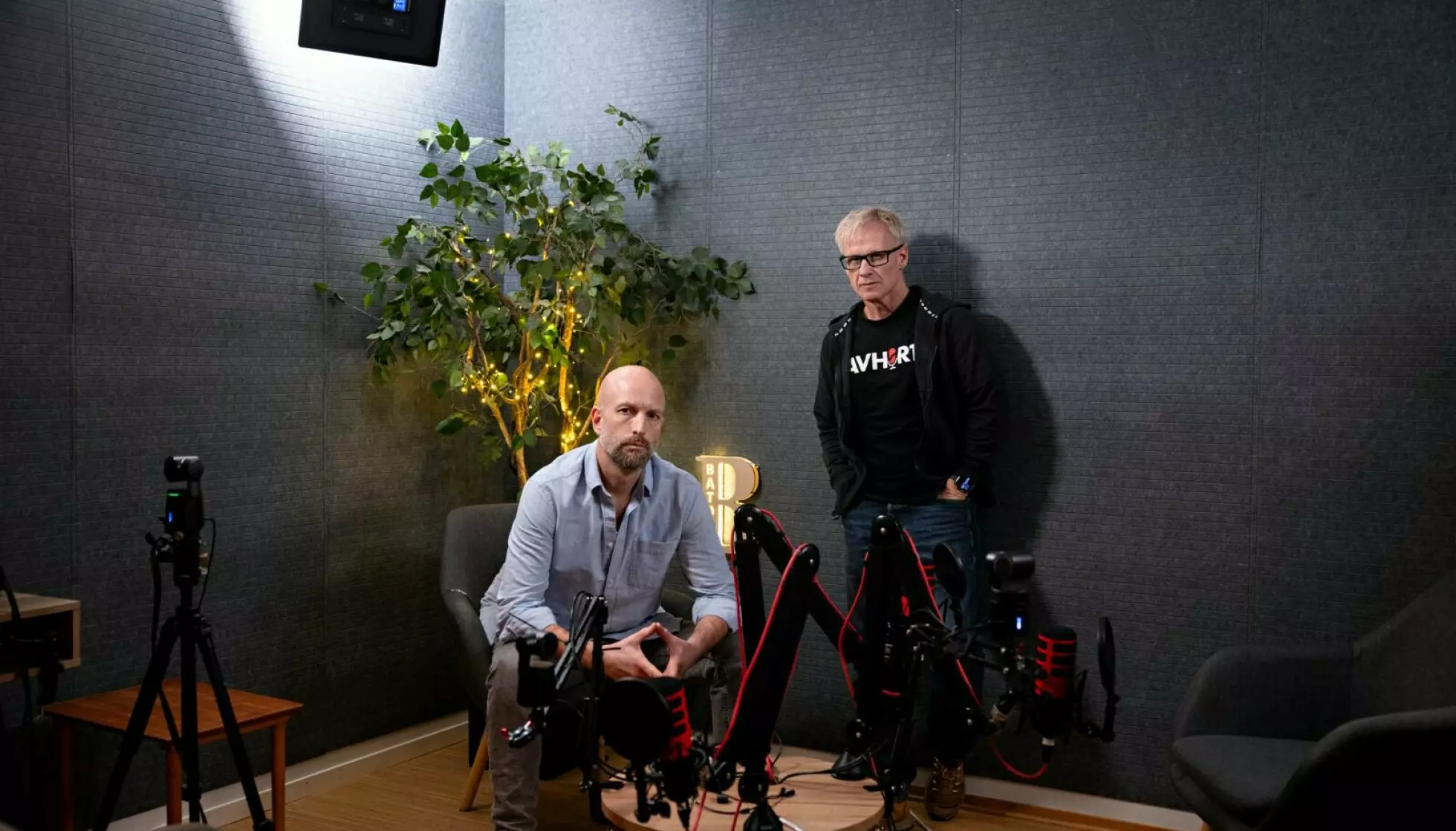 DRAMATISK TUR: – Vi trodde flere ganger at Roger Bullman skulle bli avslørt, sier podkasterne Helge Moldver (t.v.) og Stein Morten Lier. Sammen har de laget flere podkaster om drapet og den dramatiske flukten. Foto: Kristian Ridder-Nielsen / Dagbladet
