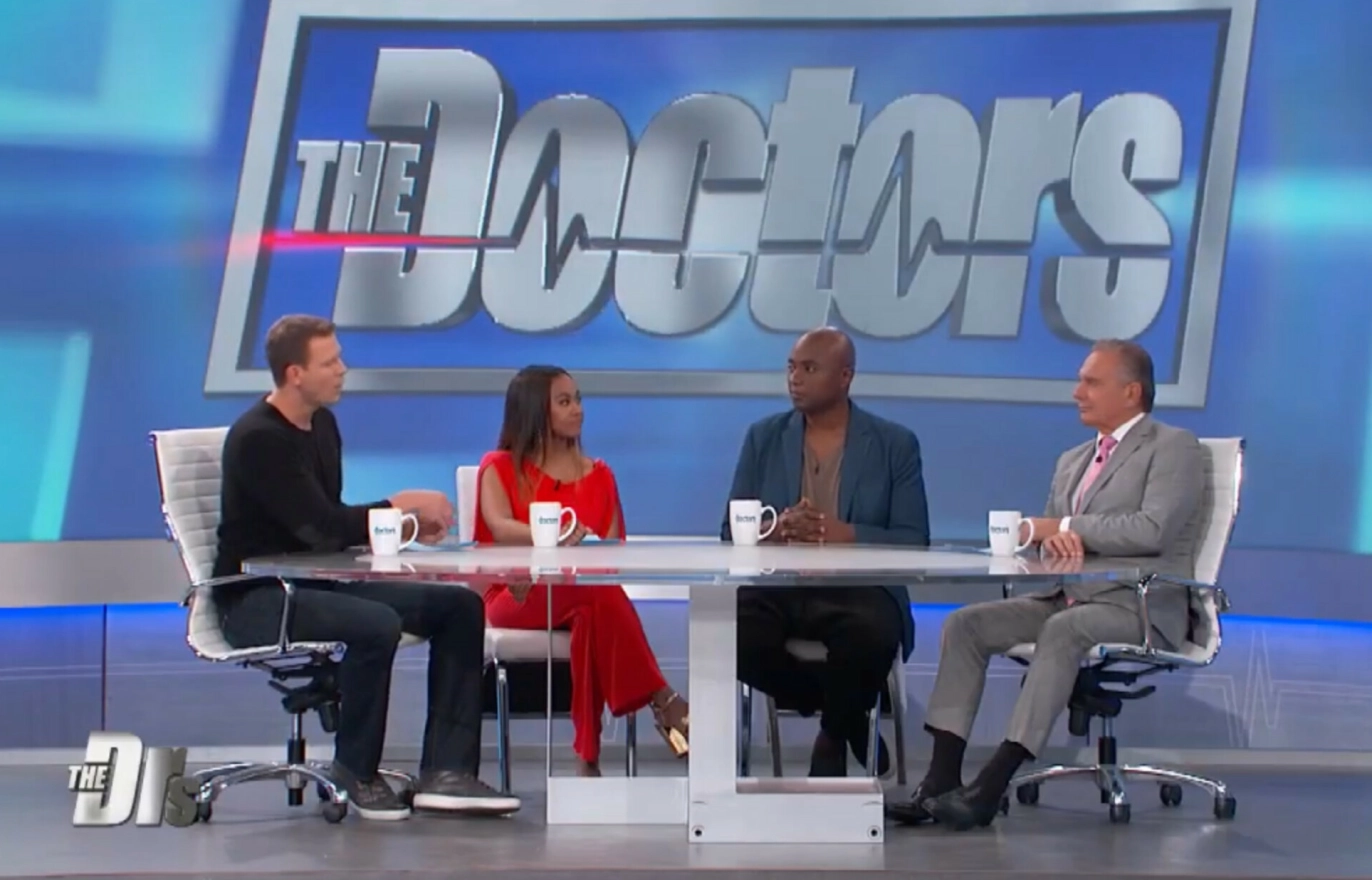 SPIRITUELL RÅDGIVER: Her er Durek på plass i «The Doctors»-studioet. Hans tittel på skjermen var «spirituell rådgiver». Foto: Skjermdump Doctors