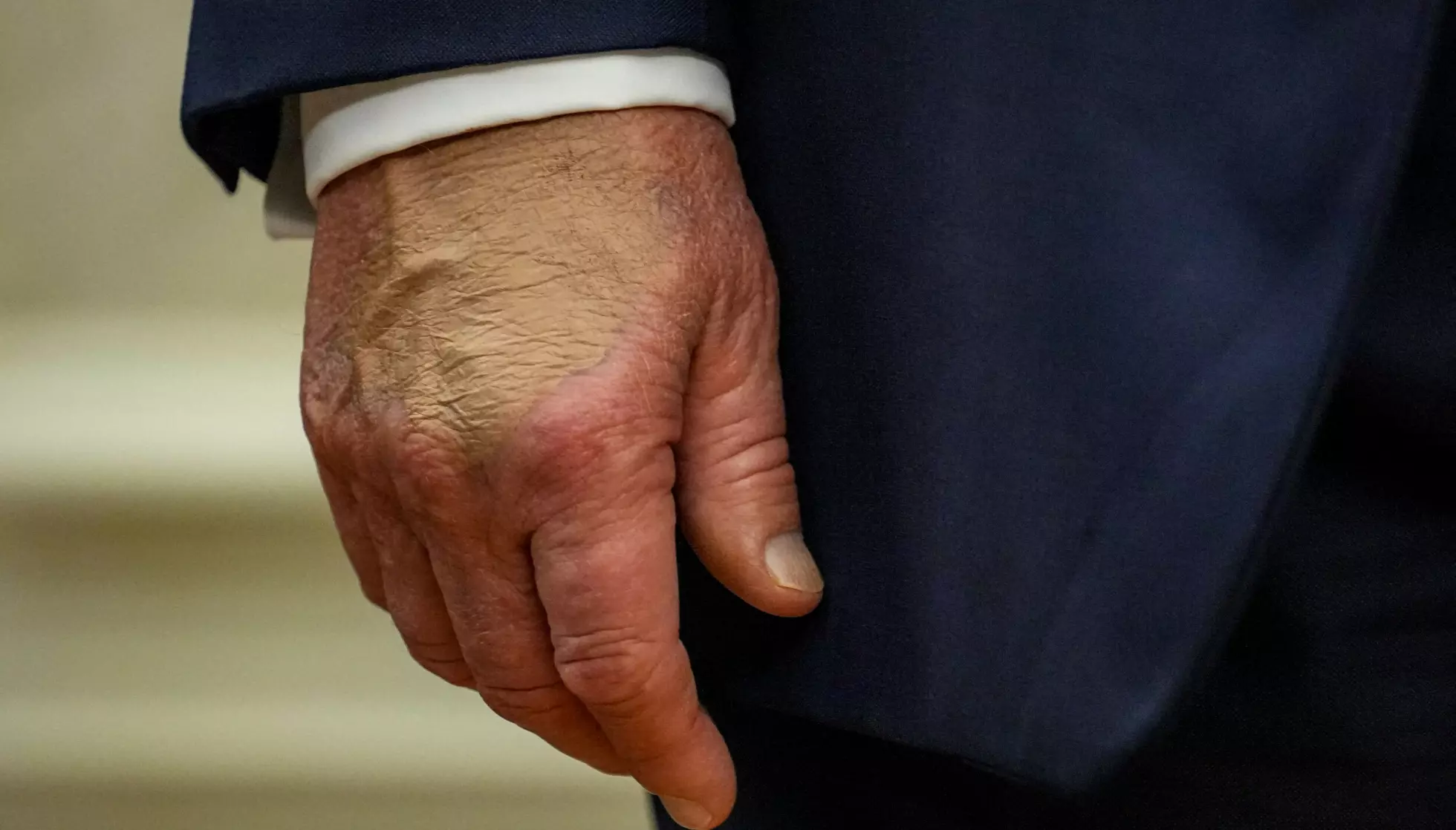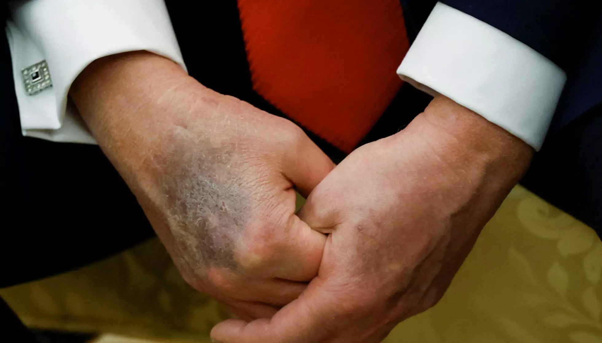 For noen måneder siden ble presidenten observert med et tydelig blåmerke på samme hånd, tilsynelatende forsøkt dekket med sminke.