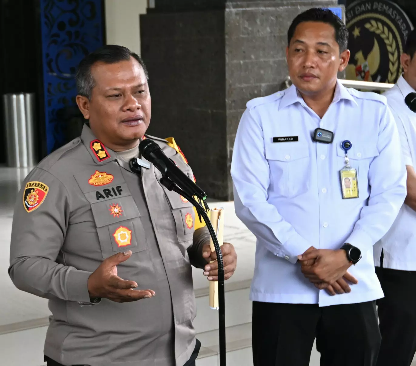 PRESSEKONFERANSE: Politisjef Arif Batubara (t.v.) og immigrasjonssjef Hery Winarko holdt en pressekonferanse etter at retten ble hevet fredag. Foto: Sonny Tumbelaka / AFP / NTB