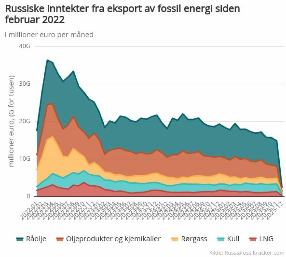 Inntektene fra salg av olje og gass har sunket med 22 prosent i løpet av de ni første månedene i 2025, sammenliknet med i fjor, oppgir det russiske finansdepartementet ifølge Reuters.