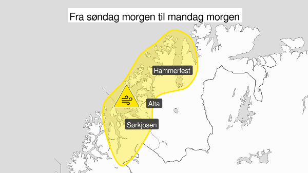 Meteorologisk institutt varslet fredag at helga i Vest-Finnmark ville bli preget av kraftige vindkast og snøfokk. Uværet er også ventet å ta seg opp i løpet av lørdagen og søndagen, og vil etter hvert bevege seg mot de vestligste delene av Øst-Finnmark.