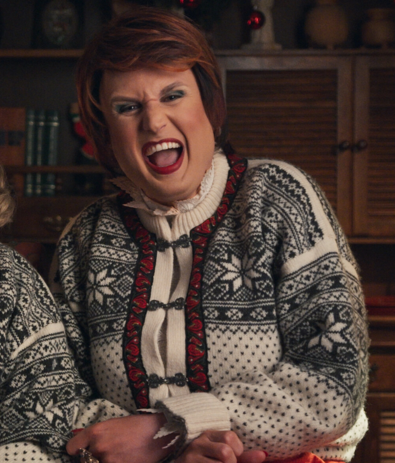 BIRTHE: Kevin Vågenes har hentet frem karakteren Birthe fra «Kollektivet» i årets julekalender på NRK. Foto: Seefood TV / NRK
