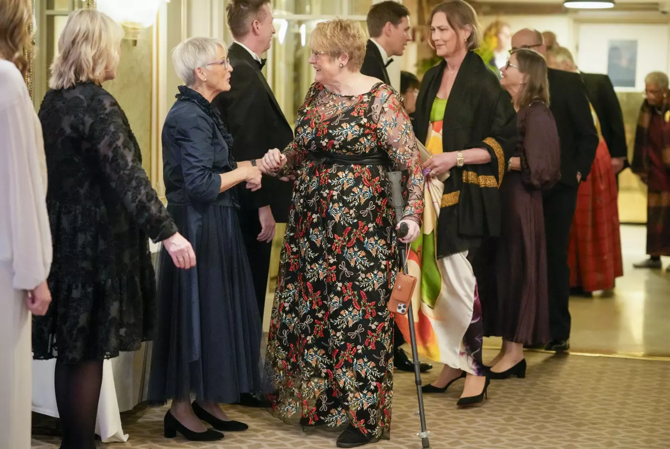 Onsdag denne uka dukket 56-åringen opp på Nobelbanketten på Grand Hotel med en krykke. Denne hadde hun også med seg på filmpremieren, men la den fra seg da bildene ble tatt.