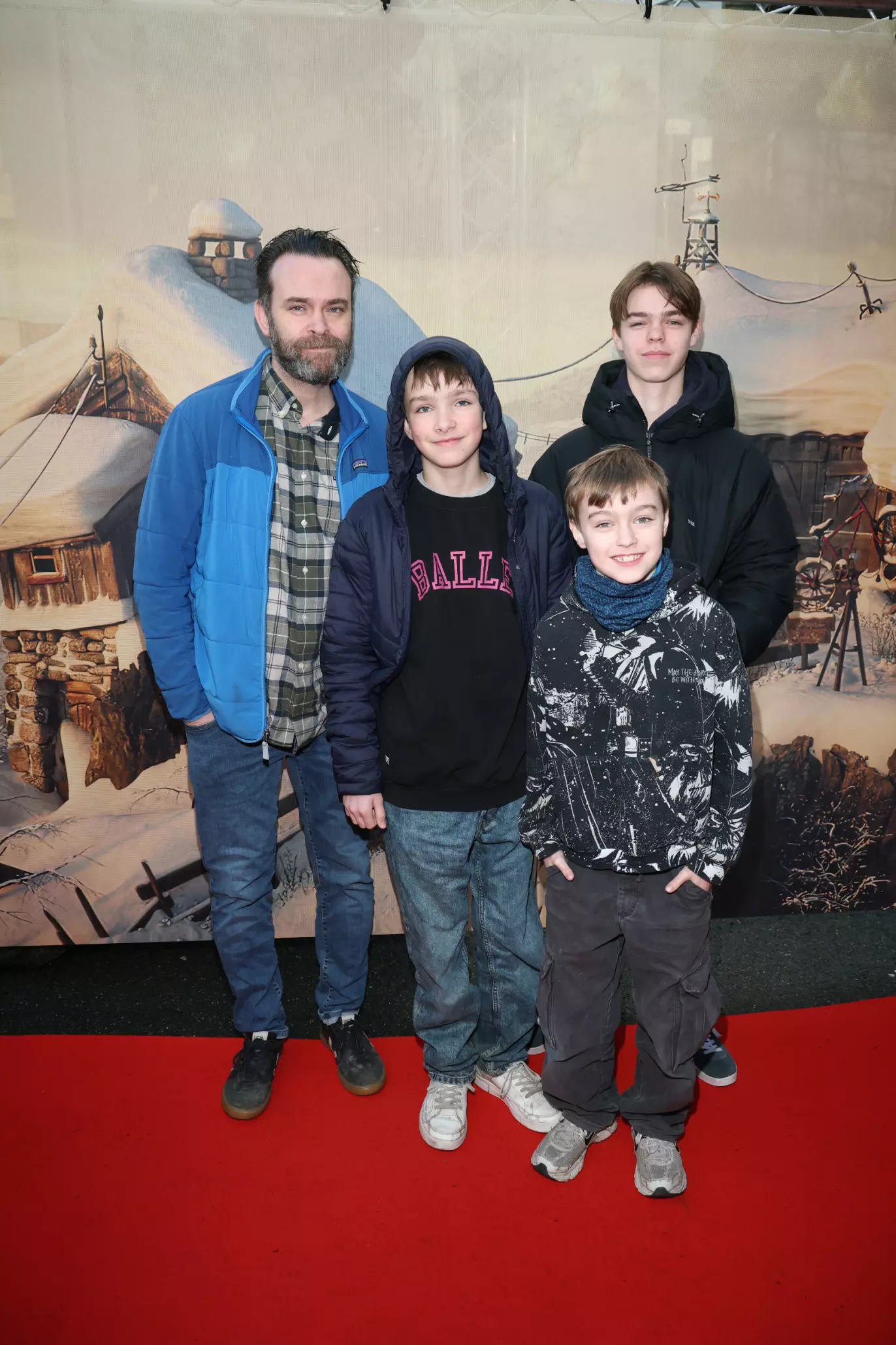 Komiker Steinar Sagen (50) dukket opp på den røde løperen med sønnen Petter og to av hans venner.