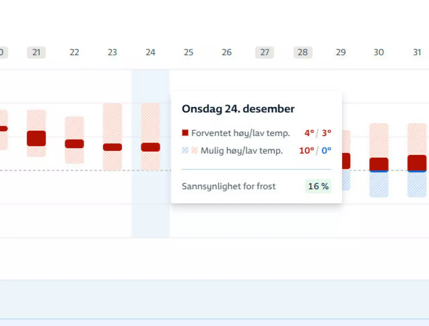 Om du er en av de som føler at jula ikke blir komplett uten snø – sjekk ut artikkelen vår like under – der garanterer værsjefen en hvit jul.
