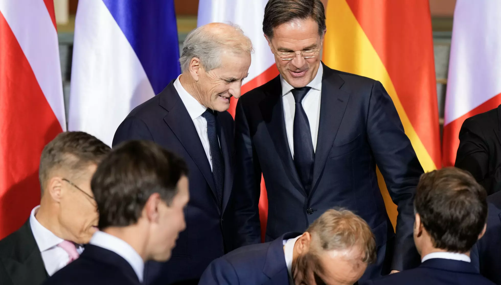 PÅ PLASS: Statsminister Jonas Gahr Støre, her avbildet ved siden av Natos generalsekretær Mark Rutte i Berlin. Foto: Cornelius Poppe / NTB