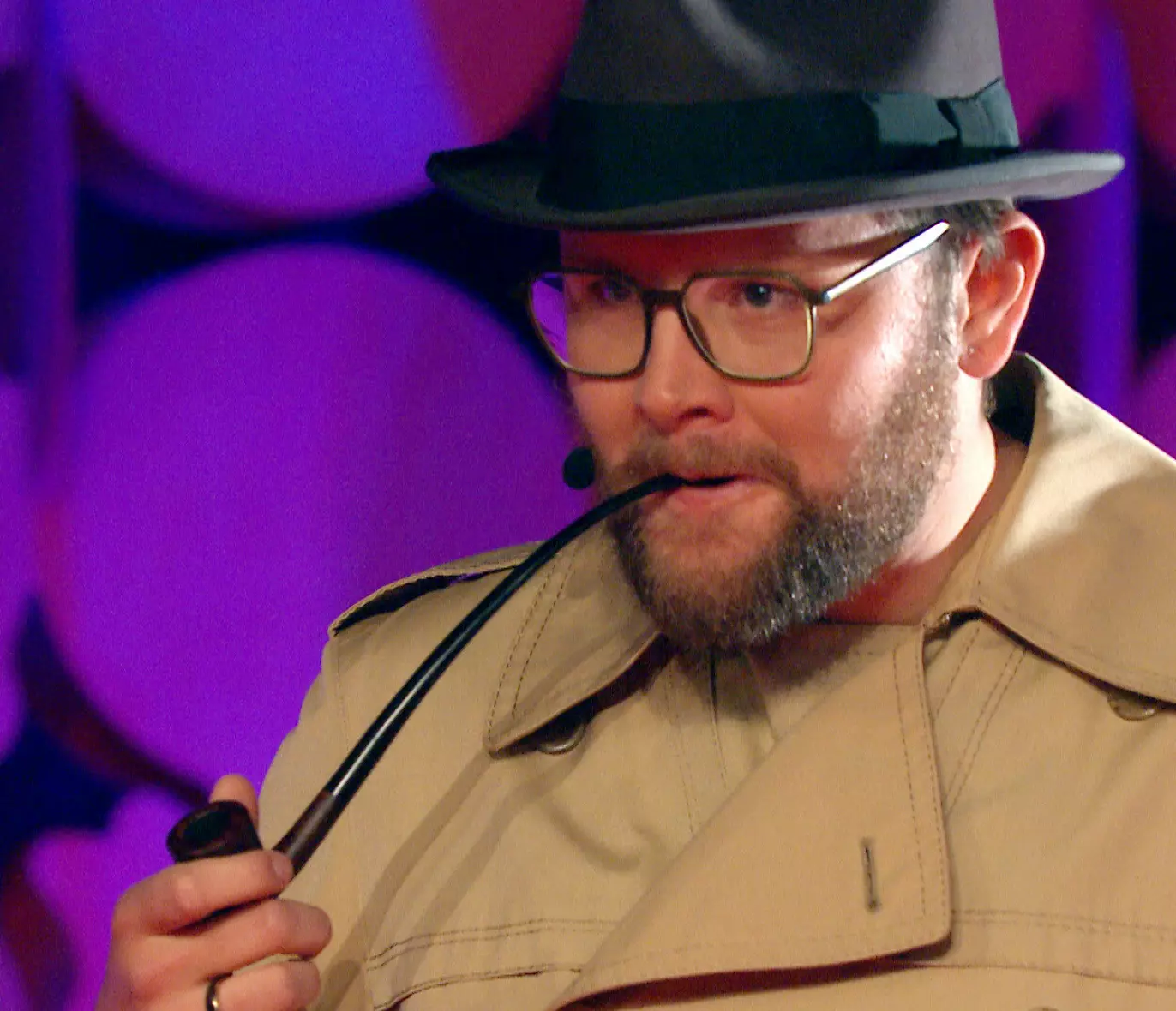 DETEKTIV?: Martin Lepperød benytter seg av et kostymet i «Verdens verste publikum». Foto: NRK