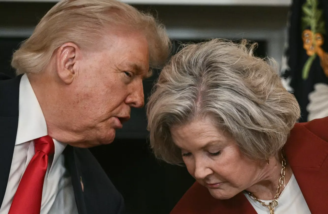ALKOHOLIKER-PERSONLIGHET: Det hvite hus’ stabssjef Susie Wiles (t.v.) sier i et større intervju med Vanity Fair at Donald Trump har «en alkoholikers personlighet» og «opererer med en oppfatning av at det ikke finnes noe han ikke kan gjøre». Foto: AP Photo/Evan Vucci/NTB