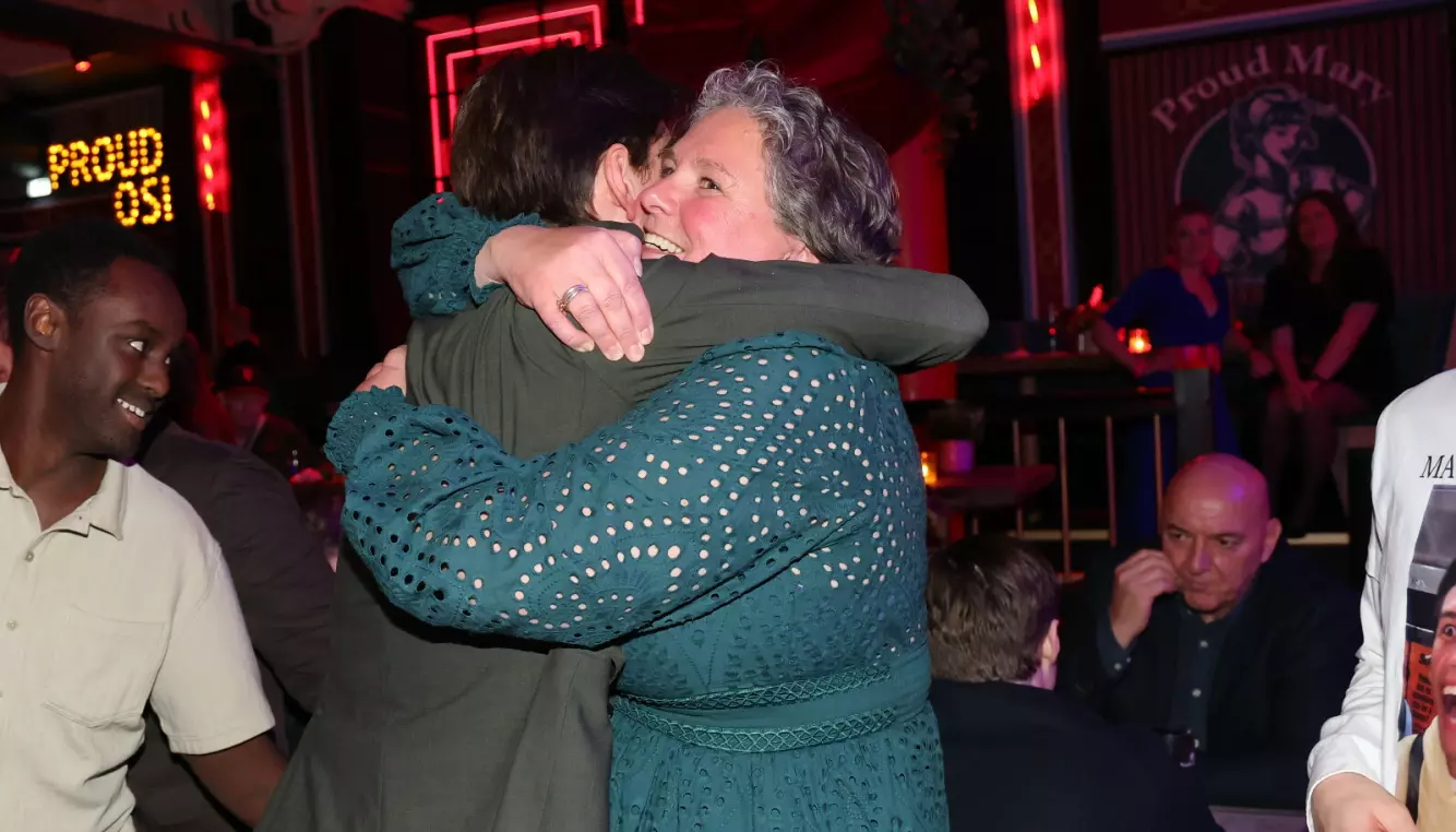 GOD KLEM: Magnus blir hyllet med gratulasjoner på finalefesten. Her med deltaker Tove Beate Hasselquist Evensen. Foto: Andreas Fadum / Se og Hør