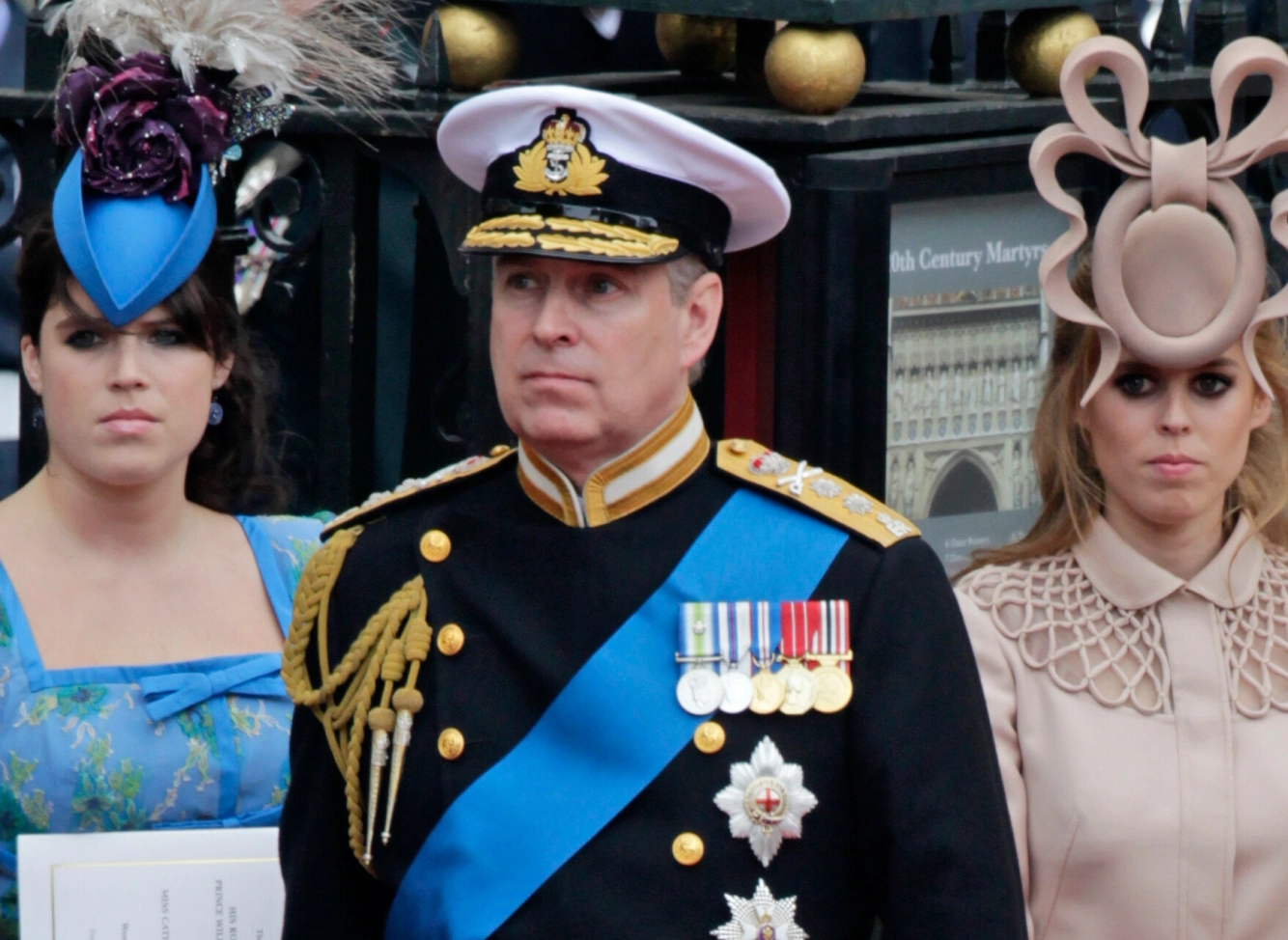 FØLER PRESSET: Prinsesse Eugenie og prinsesse Beatrices far Andrew Mountbatten-Windsor står lavt i kurs hos de fleste. Nå føler barna presset fra kongefamilien. Her fra Kate og Williams bryllup. Foto: NTB