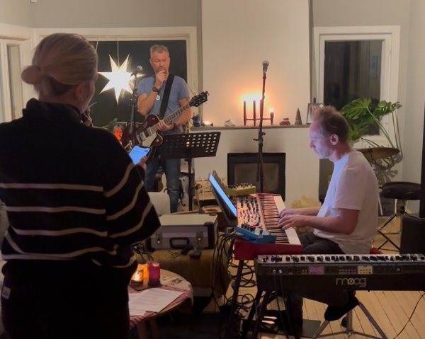 – Det er noe med stemningen. Man blir jo tvunget inn i julestemning når man øver i ei stue med lys, varme og julepynt.