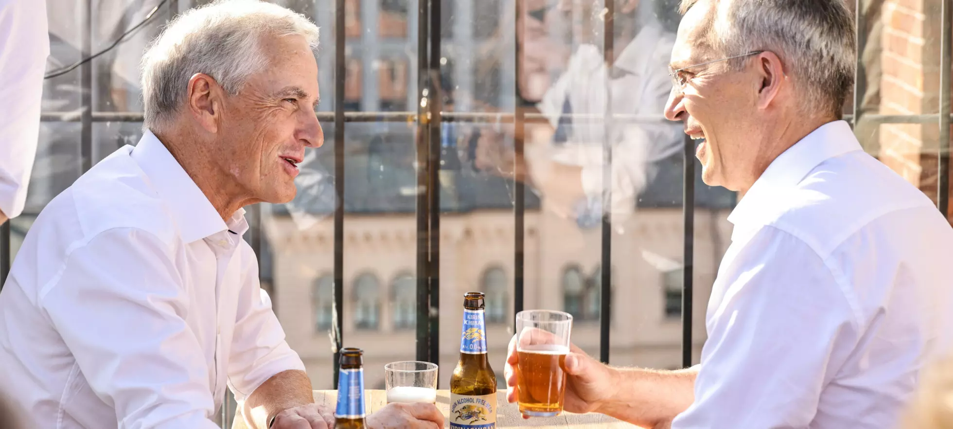 SNAKKER TIL SENTRUM Statsminister Jonas Gahr Støre (Ap) er sikker på at fotballinteresserte skal kunne kjøpe øl under nattkampene i neste års fotball-VM. Foto: Amanda Pedersen Giske / NTB