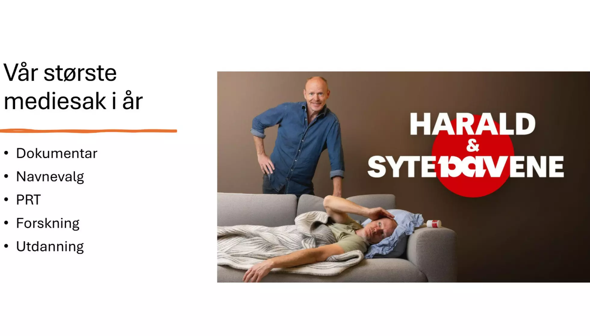 MEDIE-SATSING: Slik har ledelsen ved smerteklinikken ved OUS presentert dokumentaren «Harald & sytepavene» på fag- og pasientmøter i høst. Foto: Fra en OUS-presentasjon