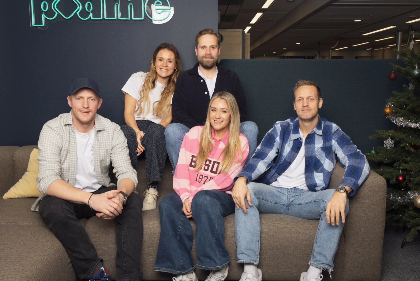 TILBAKE: Erik Follestad, Helene Olafsen, Jon Martin Henriksen, Ida Fladen og Mads Hansen samlet etter podkast-innspillingen. Foto: Kristoffer Kumar / VGTV