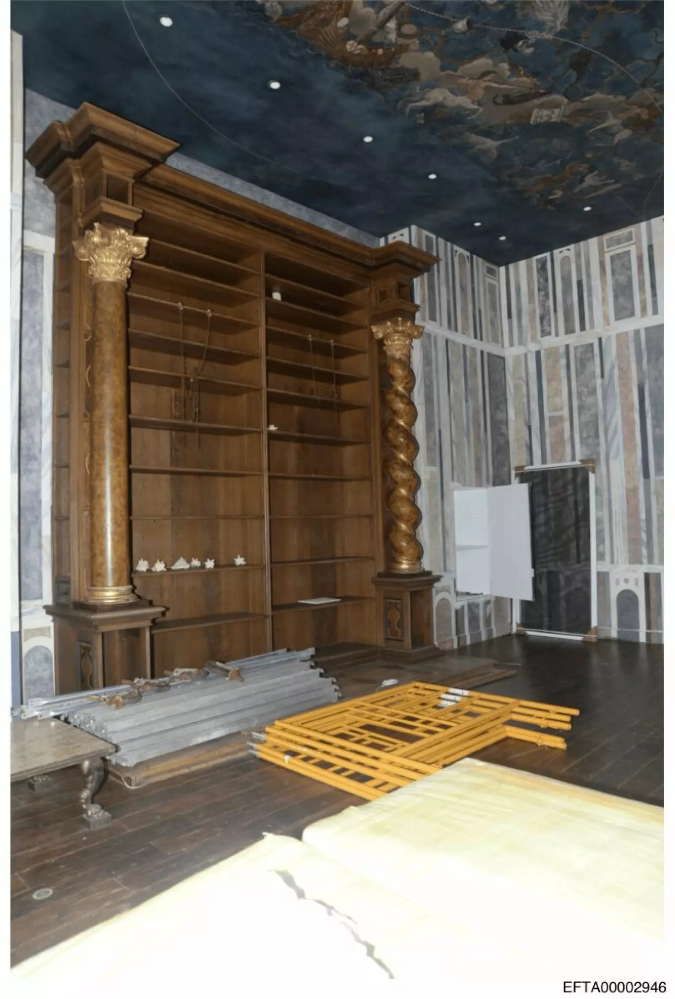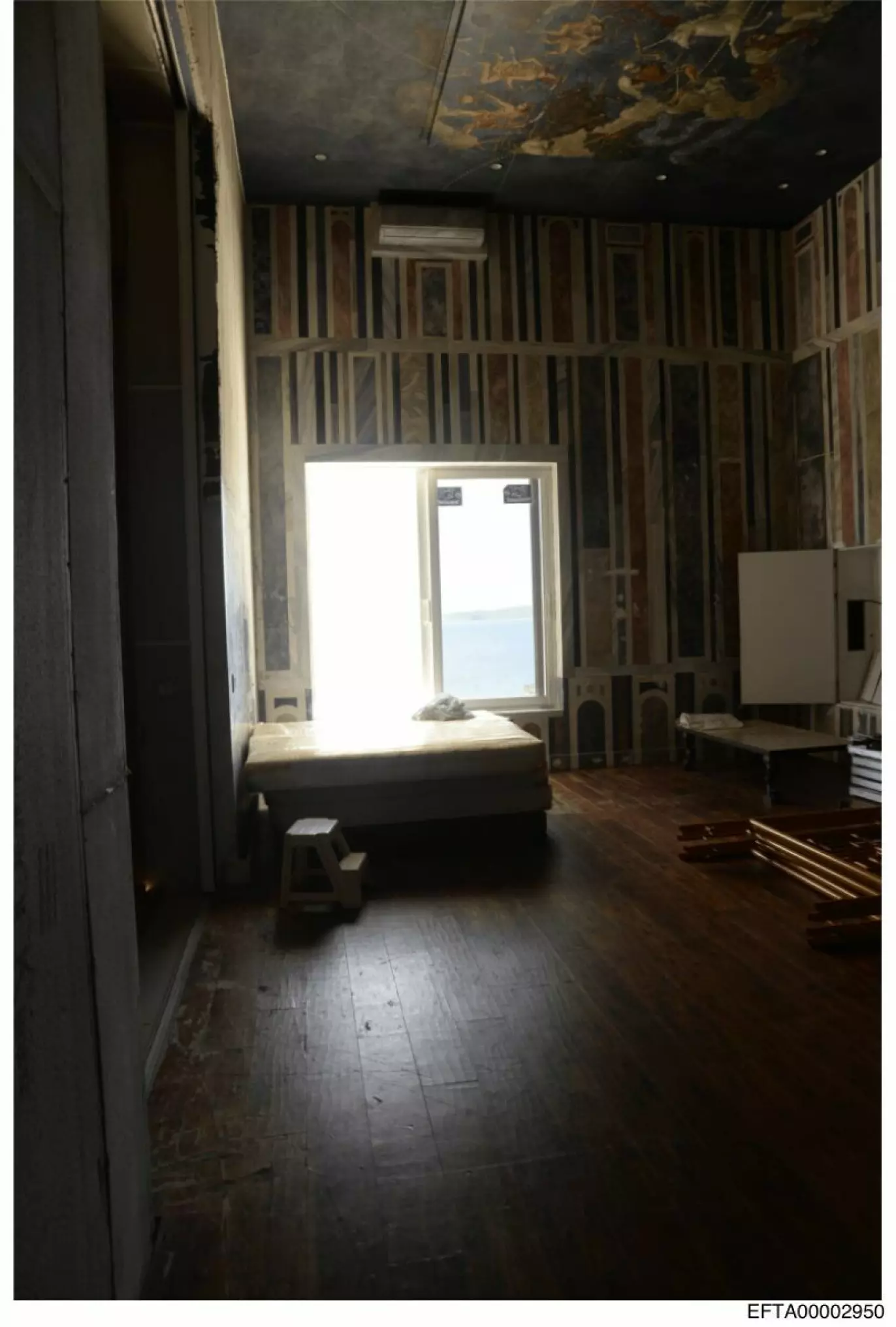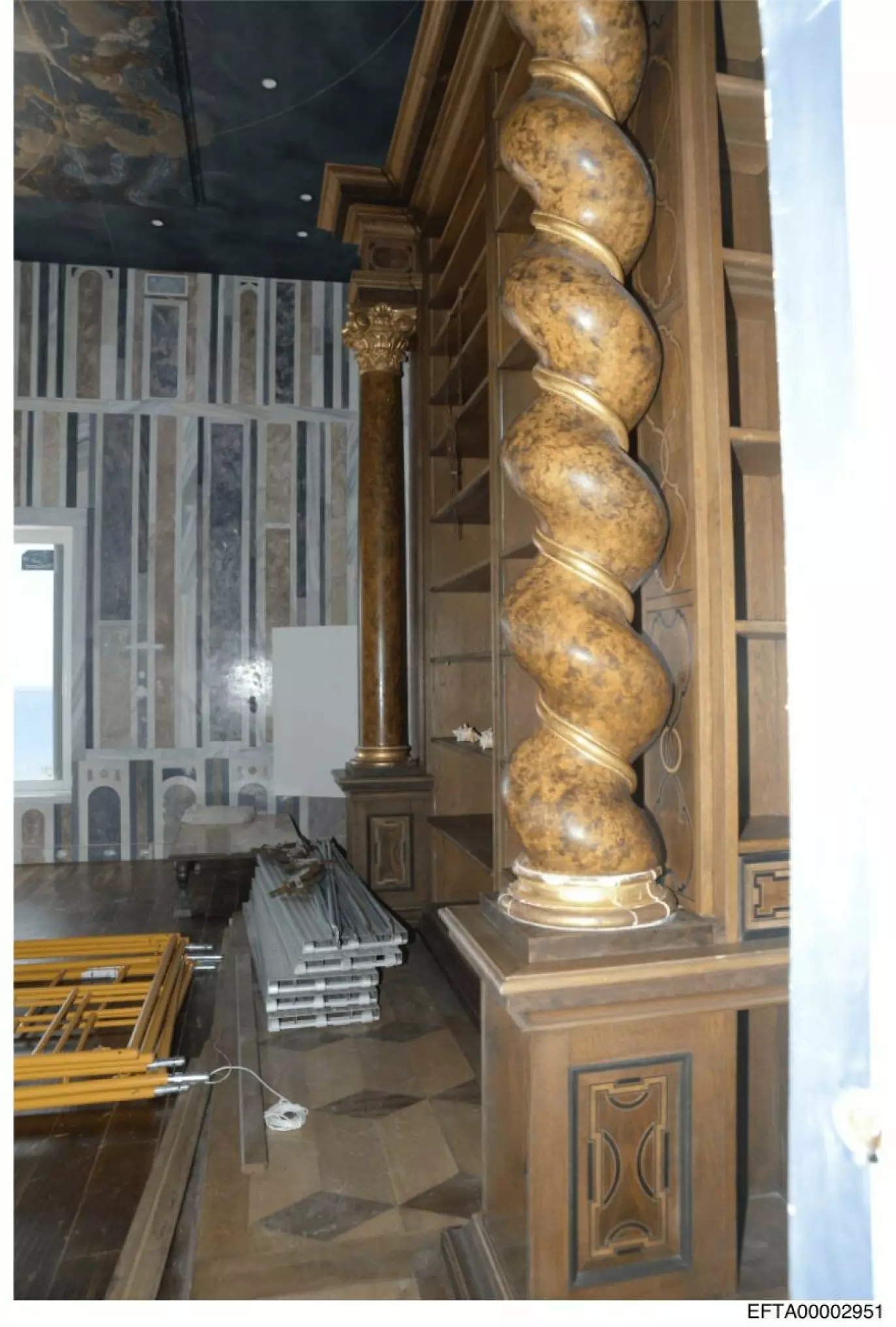 De nye bildene fra innsida viser et uferdig rom med dekorative symboler, marmorliknende overflater og et opphøyd alterliknende område.