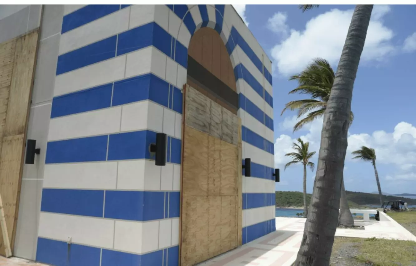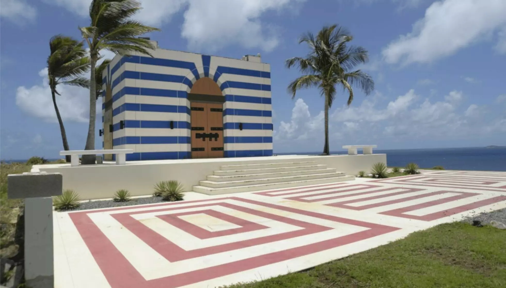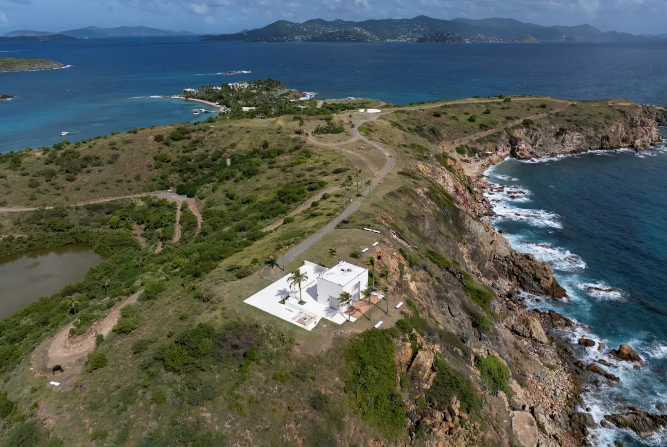 MALT HVITT: Dronebilde viser det tidligere tempelet på Little St. James 29. november i år. Foto: Marco Bello / Reuters.