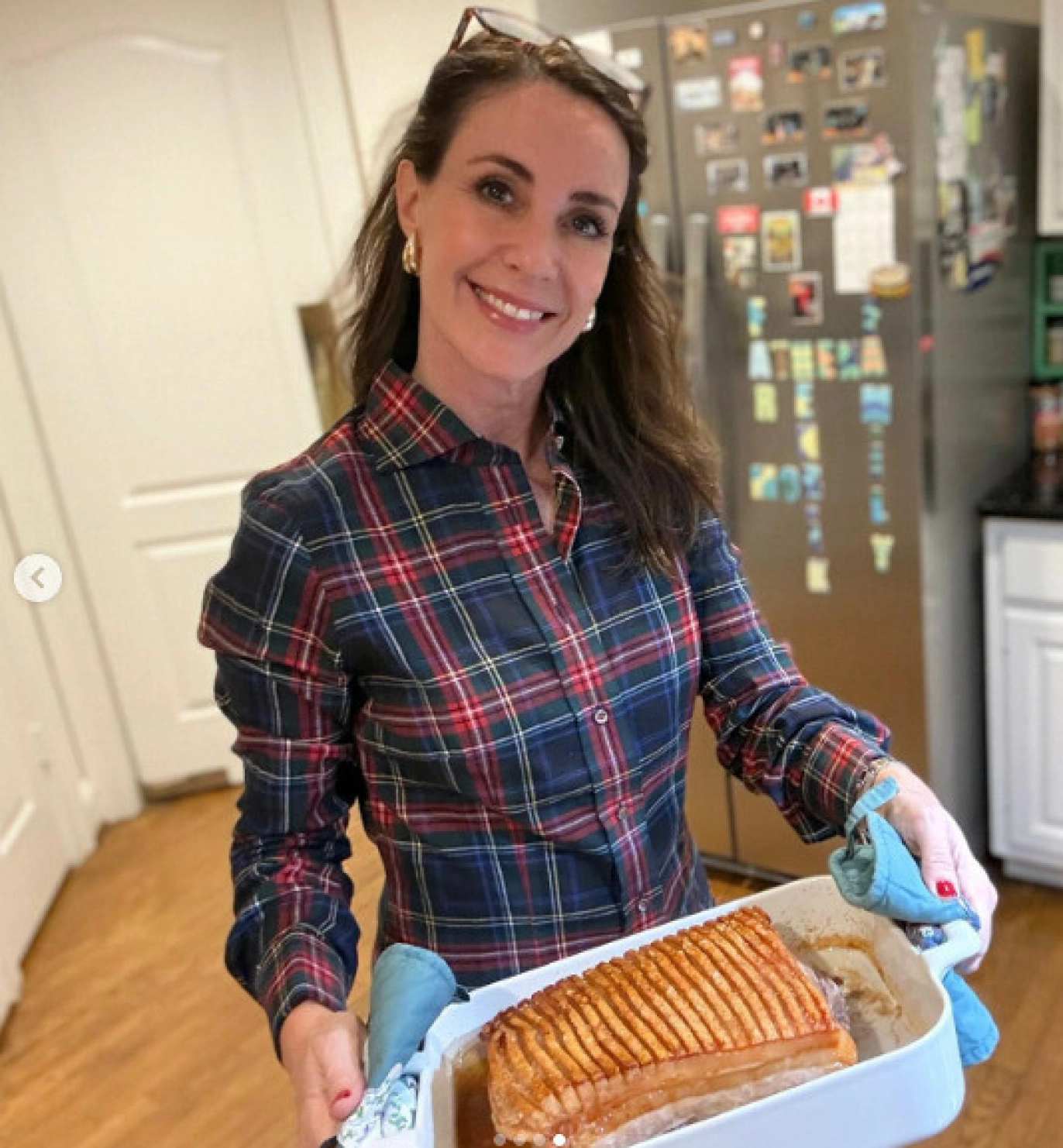 JULERIBBE: Prinsesse Marie står på kjøkkenet i julete flanell. Foto: Instagram @detdanskekongehus