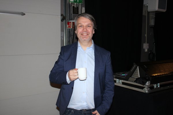 Jon Åge Meller smiler fra øret til øret. Han er kveldens «altmuligmann» som har selv kaller seg.