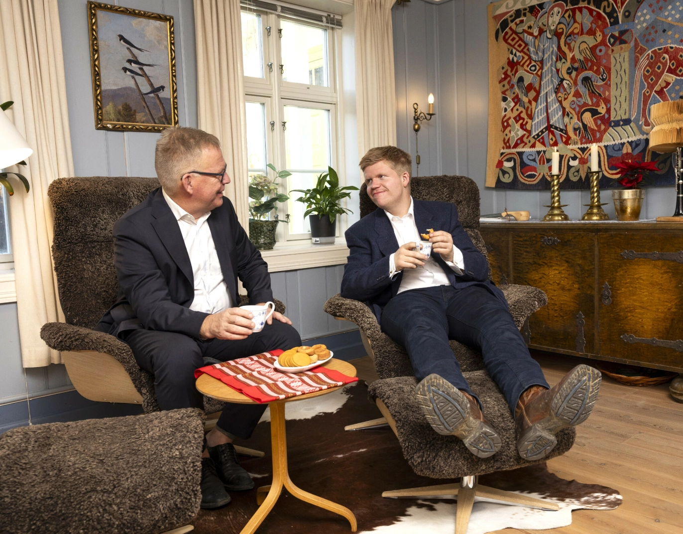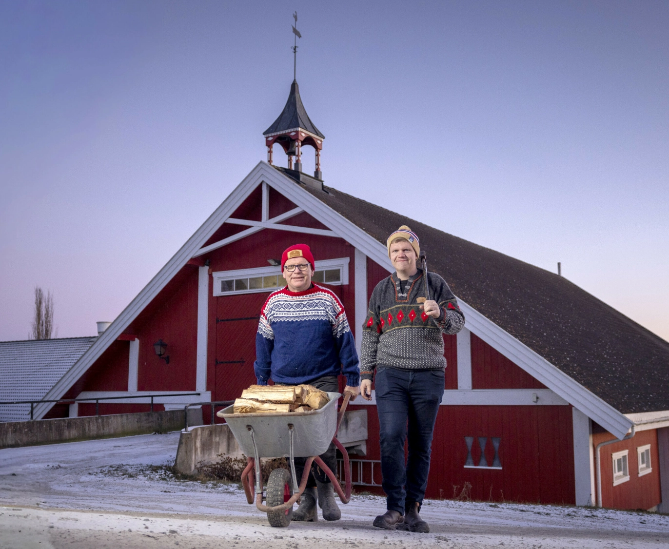 – Det er akkurat slik vi vil ha det i jula, smiler Ole, som har kledd på seg findress til ære for fotografen. Men han er litt ukomfortabel i den.
