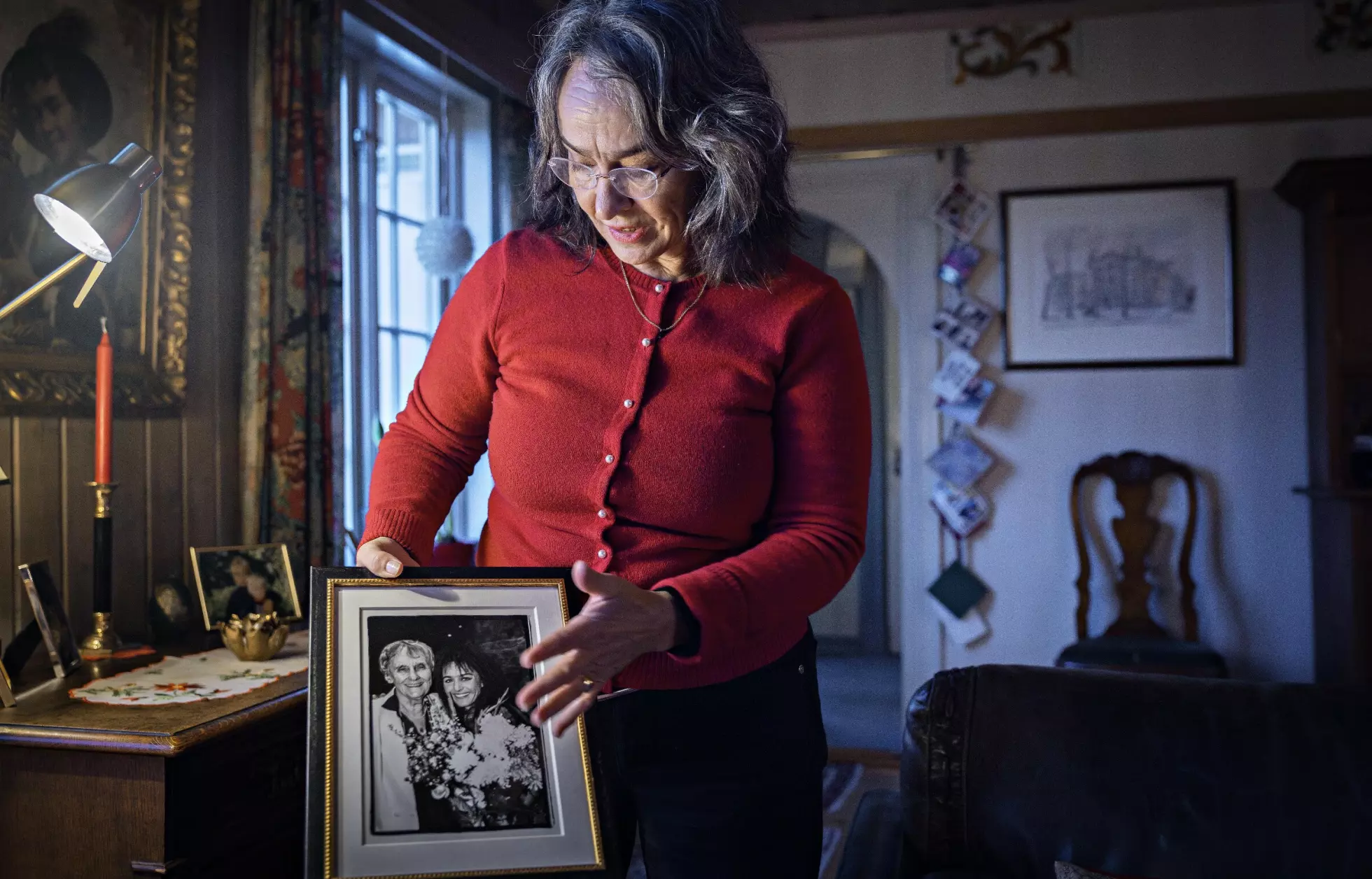 På veggen i stua henger et innrammet bilde hun er spesielt glad i. Hun reiser seg, løfter det ned og viser fram.