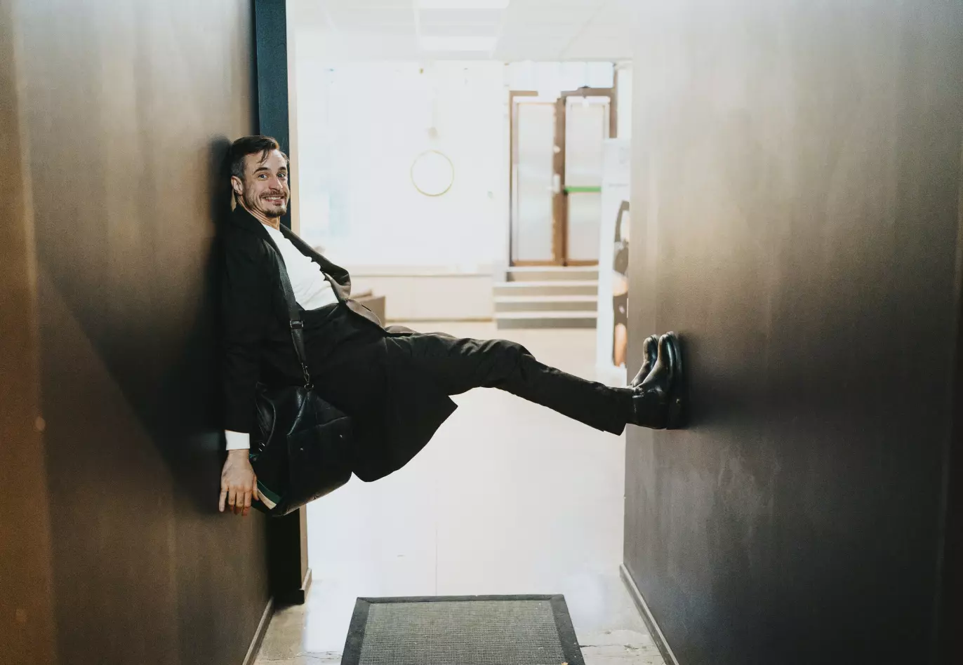 Han smiler gjennom tårene der han sitter i dansestudioet på Torshov i Oslo, lang og ulenkelig, ulastelig antrukket i sorte dressbukser og hvit genser. Den strittende bustesveisen er borte, noe som fikk «Skal vi danse»-dommer Jan Thomas til å utbryte at han ligner på Brad Pitt.