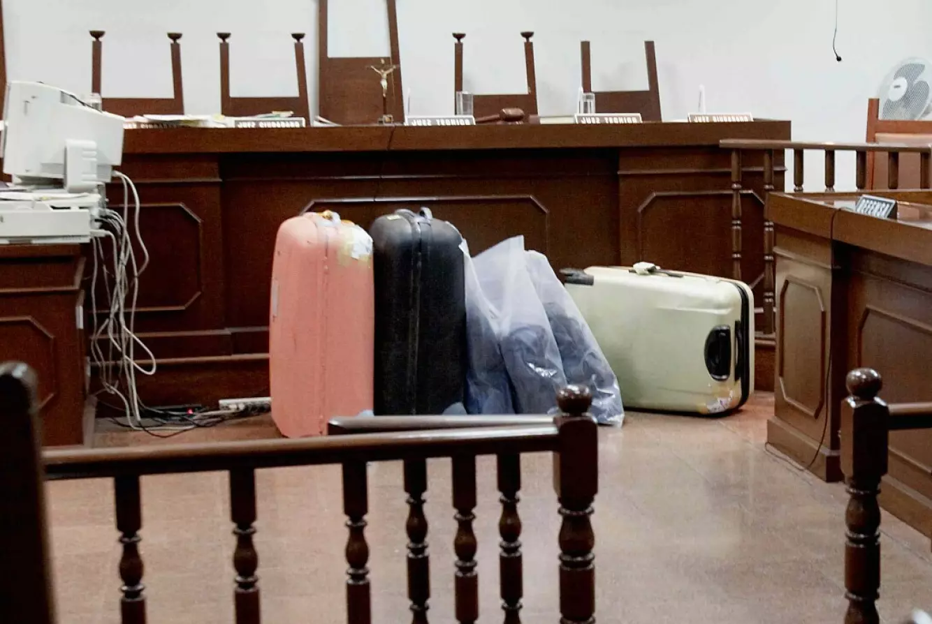 BESLAG: Dette er kofferte som dannet bevisgrunnlaget mot jentene. Foto: Stian Lysberg Solum/NTB