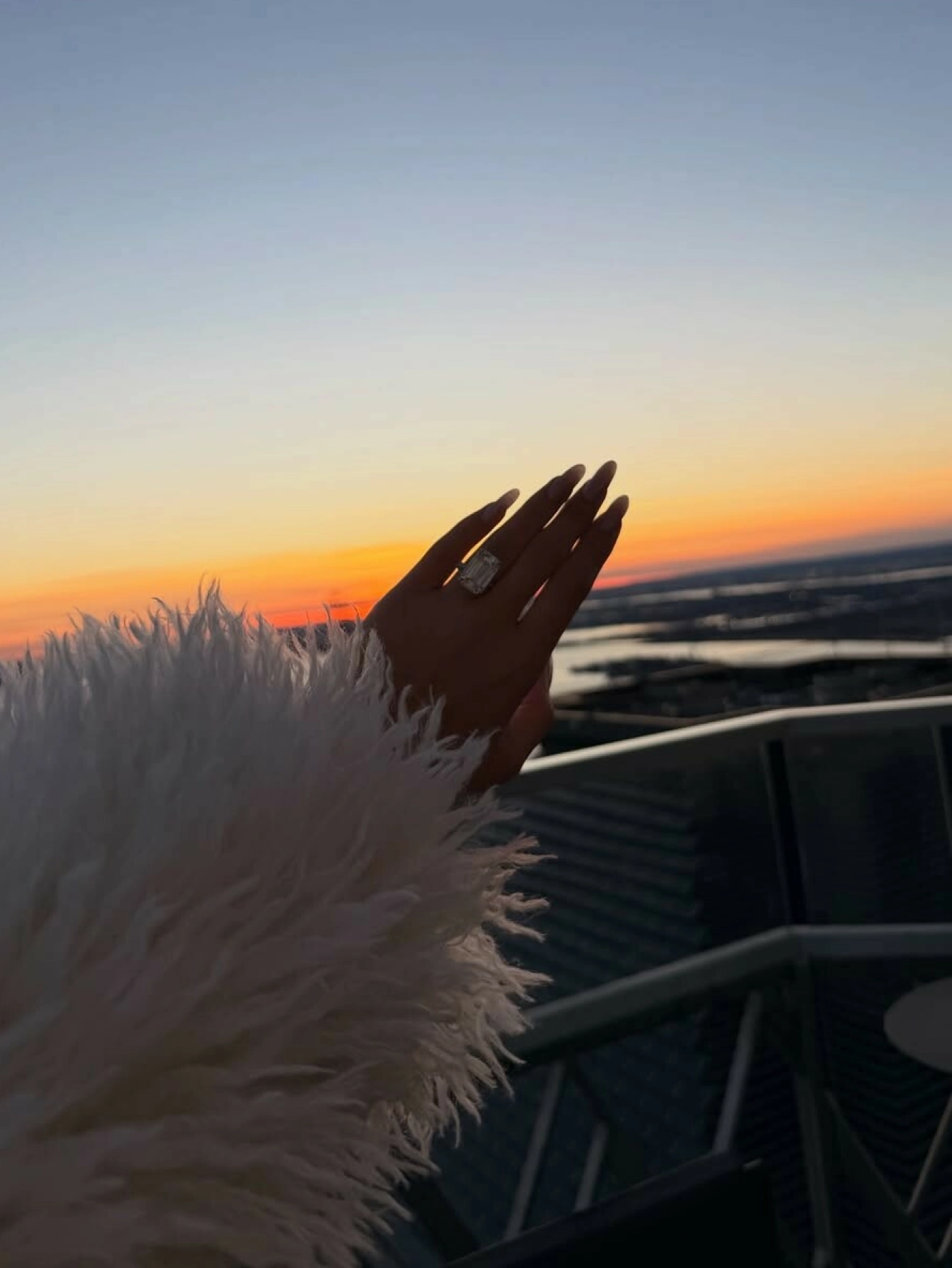 FORLOVET: Woods viste stolt frrm den store diamantringen i solnedgangen. Foto: Skjermbilde fra Instagram/@jordynwoods