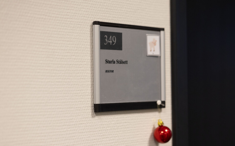 No er rektoren dels tilbake, og tek imot Khrono på kontoret. På utsida heng det ei einsleg julekule.