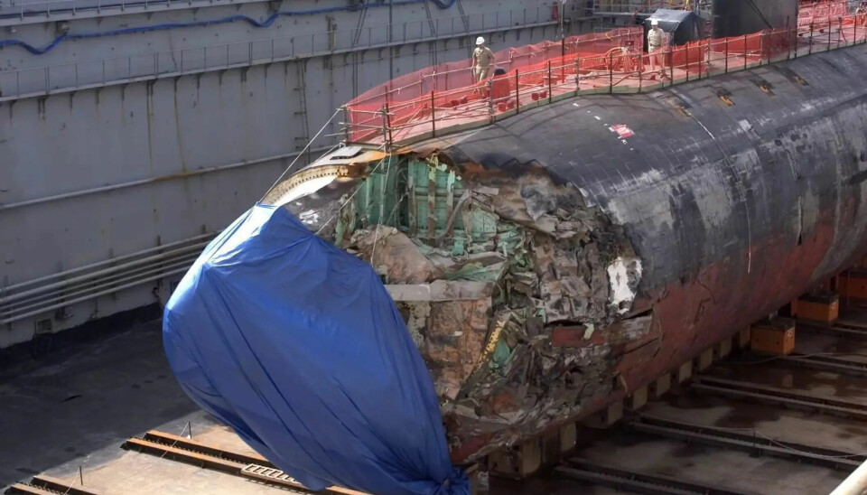 Slik så skadene ut etter at den amerikanske ubåten kolliderte med et undervandsfjell nær Guam i Stillehavet i 2005.