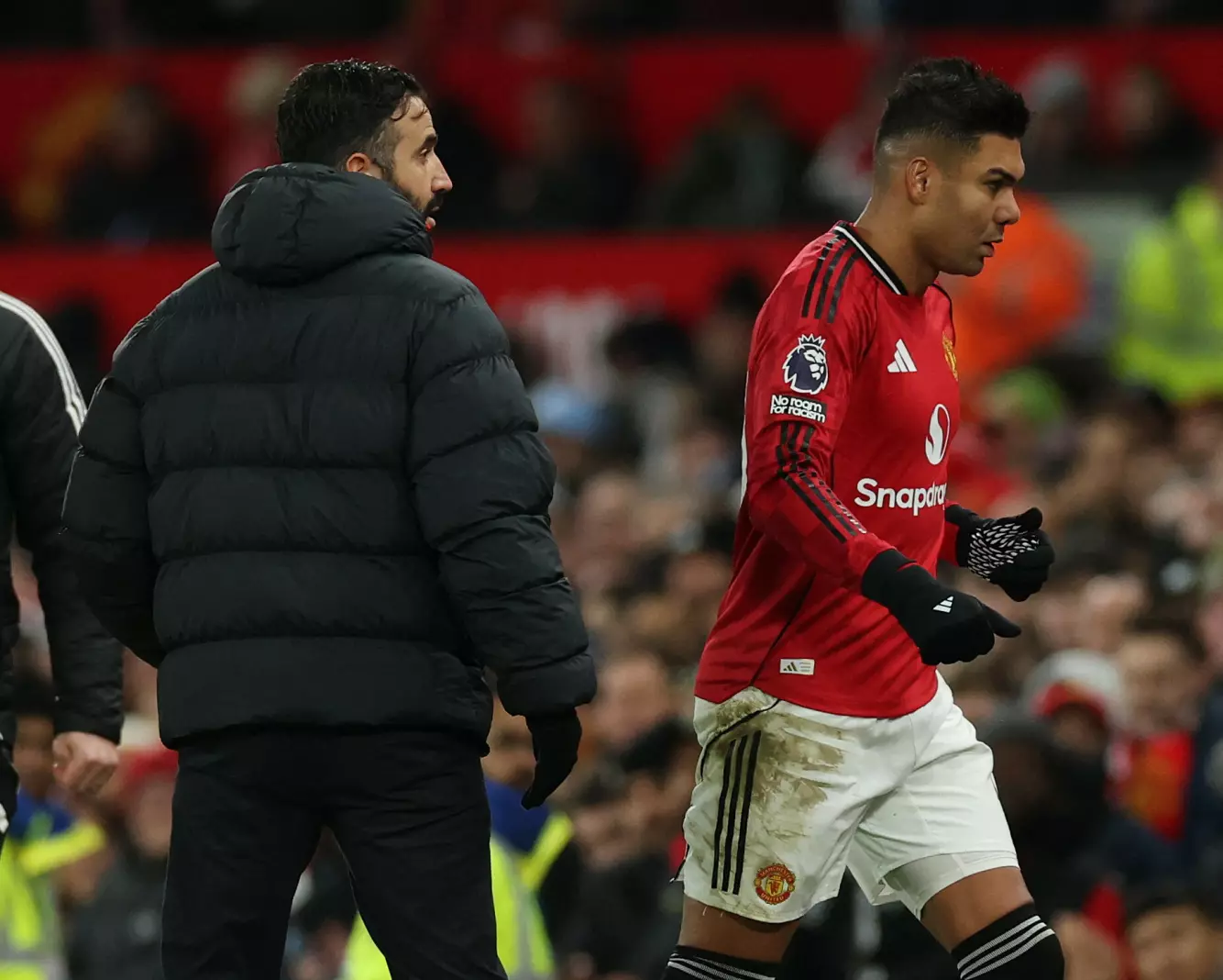 – Dette er en han ikke enig i. Han skjønner ikke noen ting. Amorim vinket ekstra på han. Dette var en spesiell situasjon. Det var en tydelig Casermiro som gikk av, sa Viaplay-kommentator Andreas Toft.