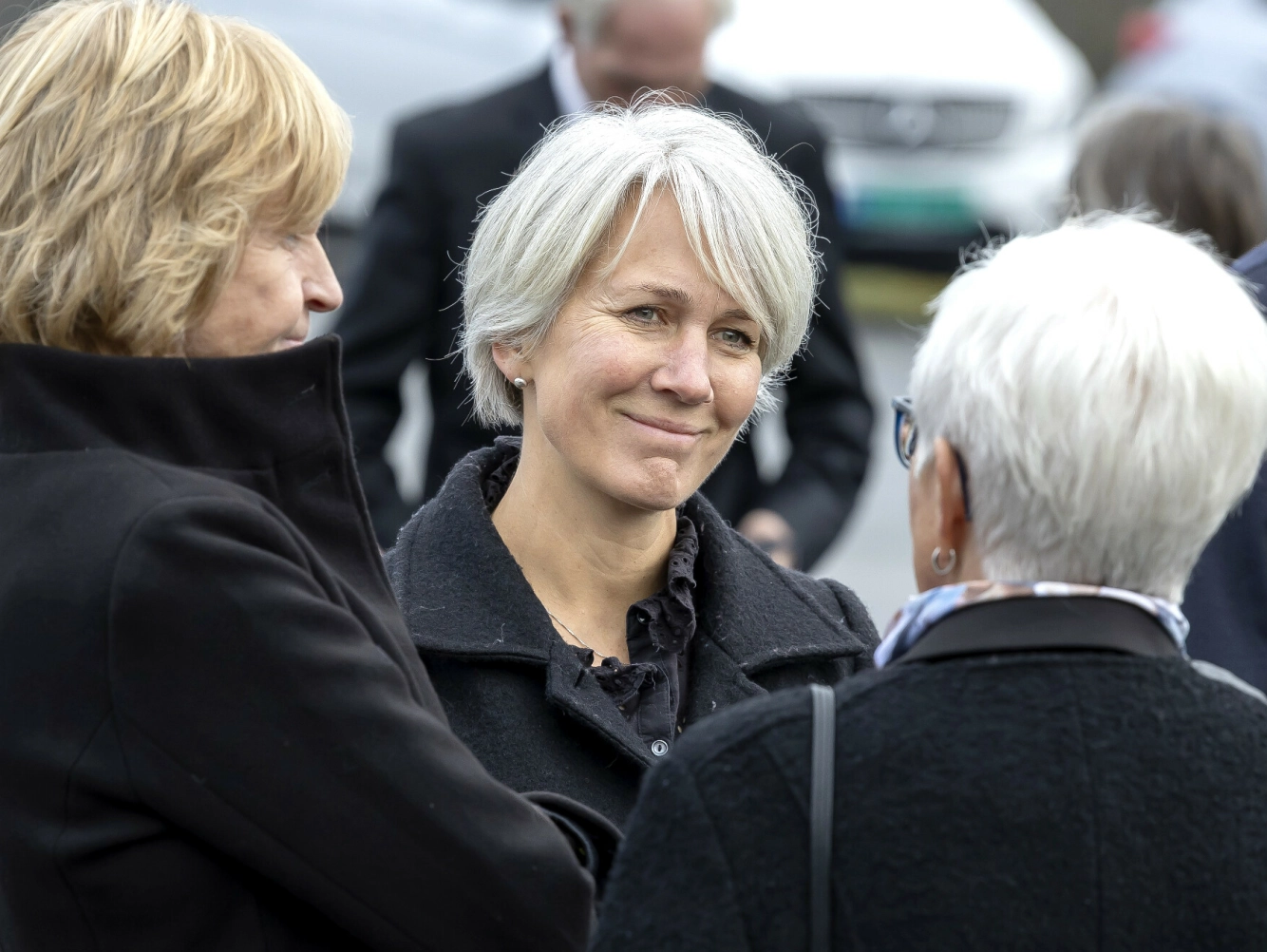 FAMILIENS FARVEL: Fra venstre Odds datter Bente Skari, Odds kone Hanne og sønnen Harald ved båren etter seremonien i Nittedal kirke. Foto: Tore Skaar