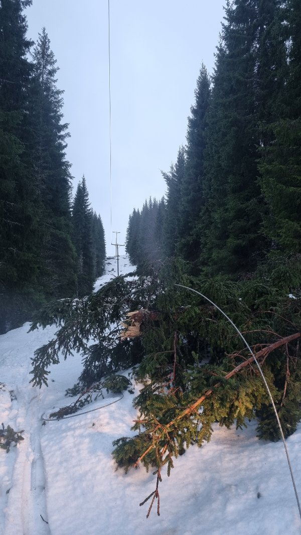 - I Rana pågår det fortsatt mange oppdrag knyttet til avslitte linjer og trefall. Også i Hemnes og Finneidfjord arbeides det intenst, både på høyspent- og lavspentnettet.