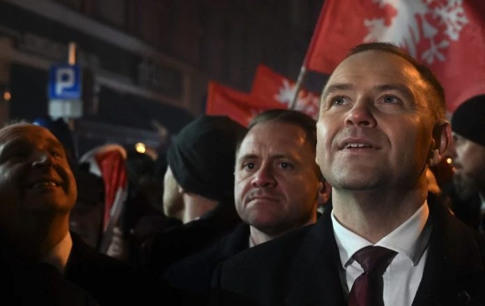 Nawrockis referanse til Polens beredskap til å forsvare sin vestlige grense utløste politisk motreaksjon. Statsminister Donald Tusk anklaget Nawrocki for å gi næring til antieuropeiske følelser. Foto: PAP/Jakub Kaczmarczyk