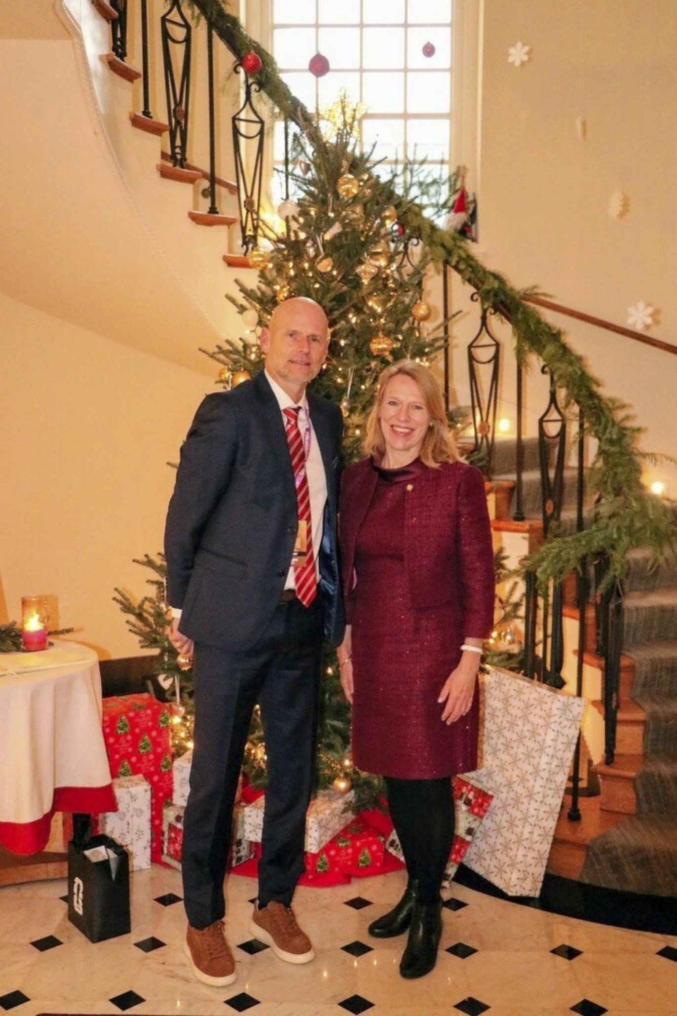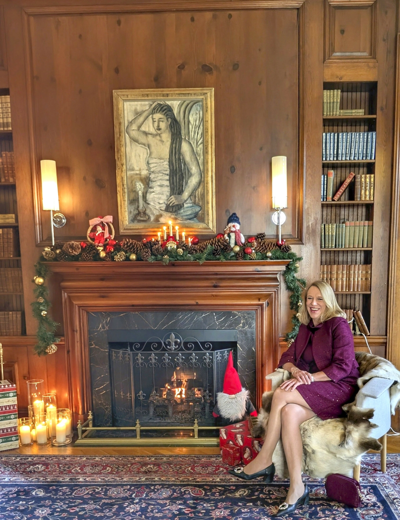 VELKOMMEN TIL OSS: Det er pyntet og gjort klart i ambassaden. Lysene er tente og nissen er på plass. Og Anniken må vel bare si på